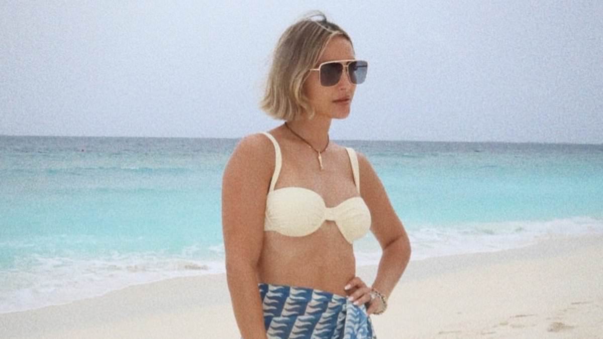 تومض فرانكي بريدج ، 36 عامًا ، القيمة المطلقة لها في بيكيني زبدة صفراء وهي تطرح على لقطات Instagram في جزر المالديف يوم الثلاثاء