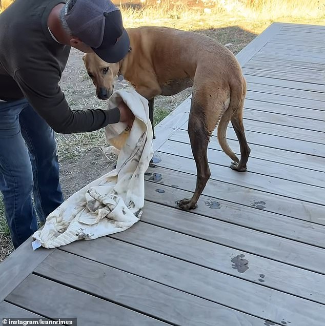 يمكن سماع رجل يقول من خلف الكاميرا: “ماذا تفعل؟”، بينما تم تدليك كلبه الثمين بالمنشفة. “ربما شربت هذا الماء.” إجمالي. انظر إلى هذا، أضاف الرجل وهو يعرض منشفته الموحلة.
