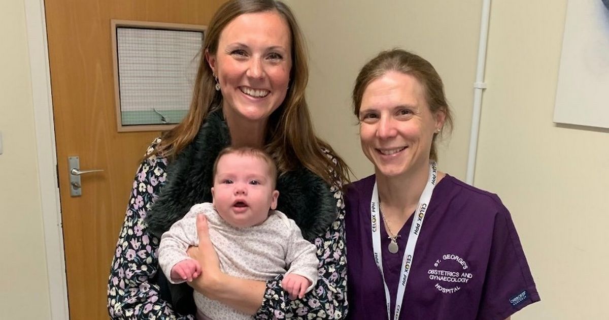 تم قبول أم من Farnham ، Surrey ، في سانت جورج بعد تشخيص المشيمة بعد أن تعرضت للنزيف لمدة 30 أسبوعًا في حملها. تتسبب الحالة الخطيرة في أن تنمو المشيمة بعمق في الرحم. في حالة هارييت ، انتقلت إلى جدار الرحم ، مما يعني أن تسليم طفلها سيكون مهدد الحياة.