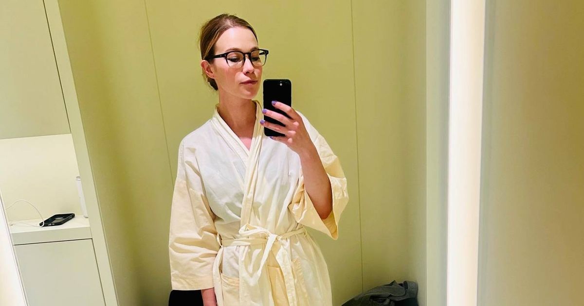 ارتدي ثوب الملابس الأصفر الشاحب والانزلاقات التي قمت بخلطها من الجراب المستقبلي الذي حدد كل النمش ، الخلد وعلامات حروق الشمس ، وذهبت إلى الجانب الآخر من الغرفة للاستلقاء على طاولة حيث قام ليزر بقياس نبضتي ورفع رادار عبر ثياتي لتتبع كيف تحرك من خلال شرياني.