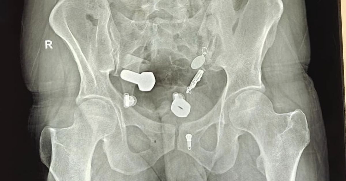 حاول الأطباء في البداية إزالة المجموعة الغريبة من الأجسام المعدنية باستخدام التنظير الداخلي، لكنهم اضطروا إلى إجراء عملية جراحية استغرقت ثلاث ساعات لإخراج كل شيء