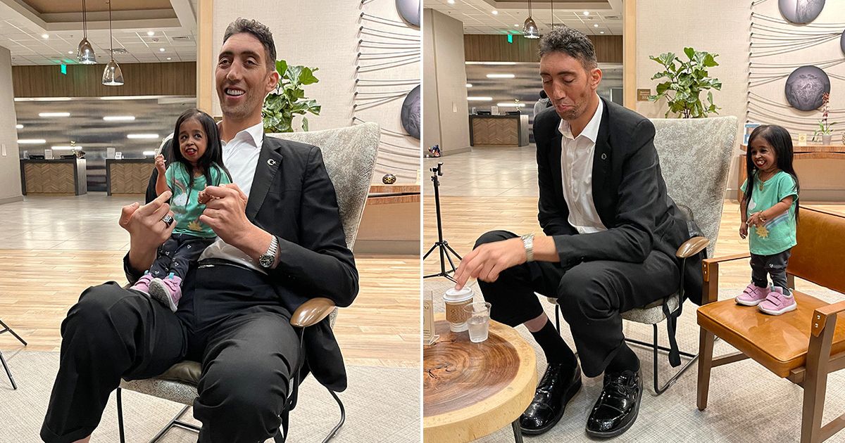 يبلغ طول سلطان كوسين 8 أقدام و3 بوصات، في حين يبلغ طول جيوتي أمجي 2 قدم فقط بالمقارنة. التقى الزوجان في إيرفين، كاليفورنيا، يوم الاثنين حيث التقطا الصور معًا.