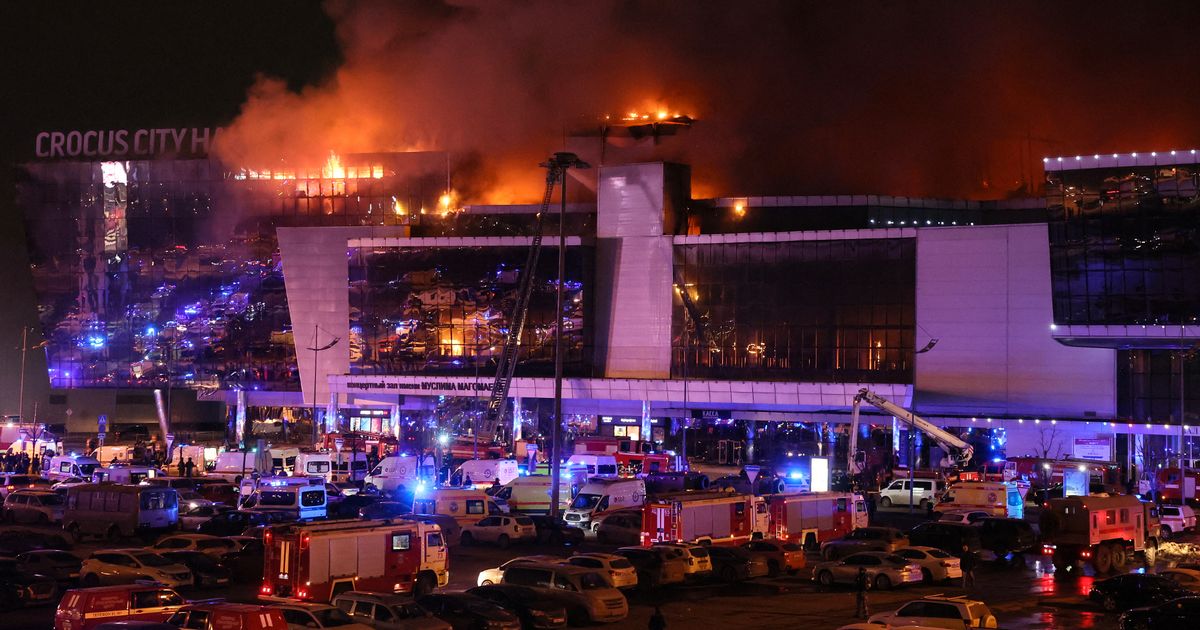 وكان الهجوم، الذي أدى إلى اشتعال النيران في قاعة الحفلات الموسيقية وانهيار سقفها، هو الأكثر دموية في روسيا منذ سنوات، وجاء في الوقت الذي دخلت فيه الحرب في أوكرانيا عامها الثالث. ووصف عمدة موسكو سيرغي سوبيانين الغارة بأنها “مأساة ضخمة”. وقال الكرملين إن بوتين أُبلغ بعد دقائق من اقتحام المهاجمين قاعة مدينة كروكوس، وهو مكان كبير للموسيقى يقع على الطرف الغربي لموسكو ويمكن أن يستوعب 6200 شخص.