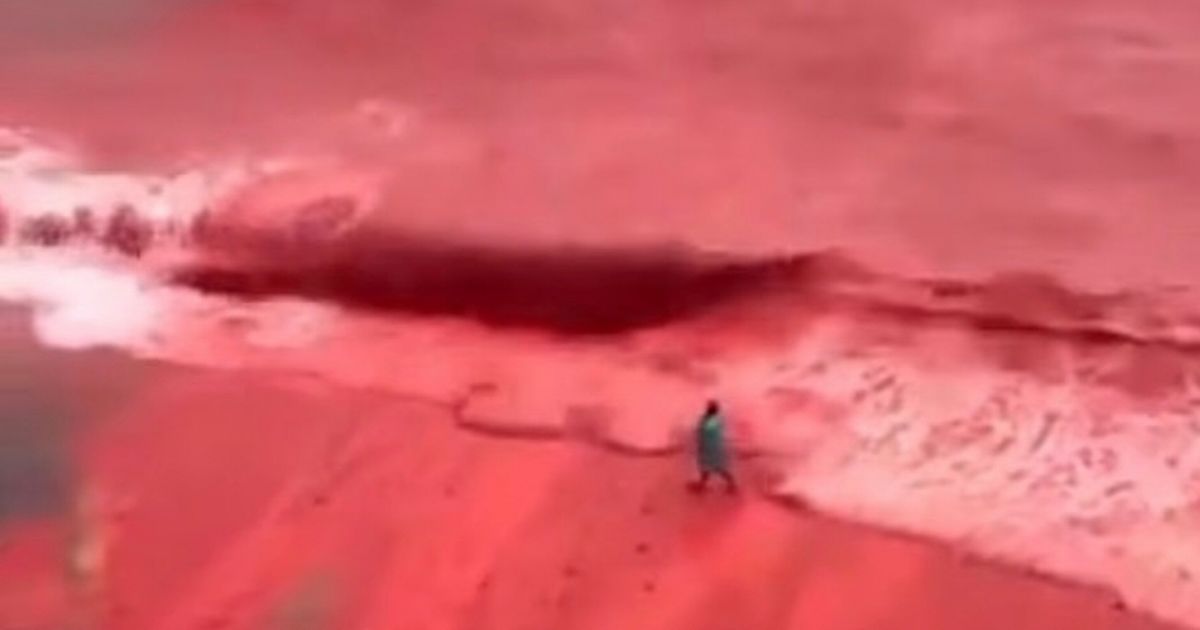 تُظهر اللقطات المذهلة اللحظة التي تحول فيها البحر إلى اللون الأحمر الدموي بسبب هطول أمطار غزيرة مفاجئة، مما أثار مقارنات مع نبوءة الكتاب المقدس.
