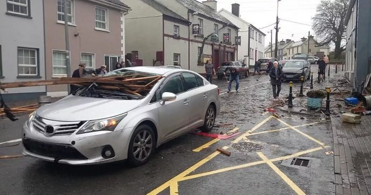 تعرضت المنازل والسيارات لأضرار بالغة بعد أن يُعتقد أن إعصارًا ضرب منطقة في أيرلندا اليوم.