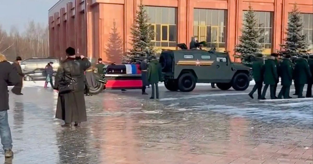 نُشرت اليوم لقطات نادرة لجنازة جنرال فلاديمير بوتين بعد مقتل القائد “بواسطة لغم أرضي روسي”.