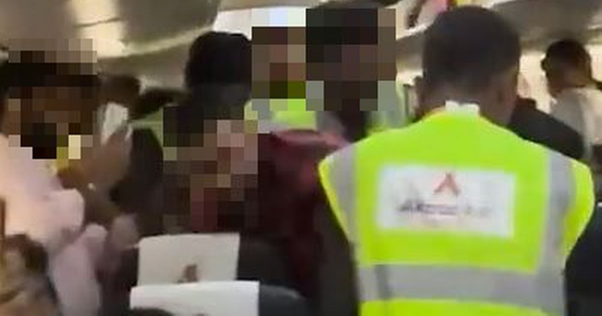 ثم قام الأمن بسحبه من الطائرة. ويمكن رؤية الركاب الآخرين وهم يضحكون ويصورون المشاجرة، بينما يصرخ أحد الركاب “أخيرًا” بعد إبعاده.
