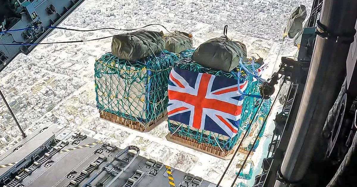 أرسلت طائرة تابعة لسلاح الجو الملكي البريطاني من طراز A400M الماء والأرز وحليب الأطفال إلى القطاع الفلسطيني في أول عملية توصيل شبه بريطانية منذ اندلاع الأزمة.