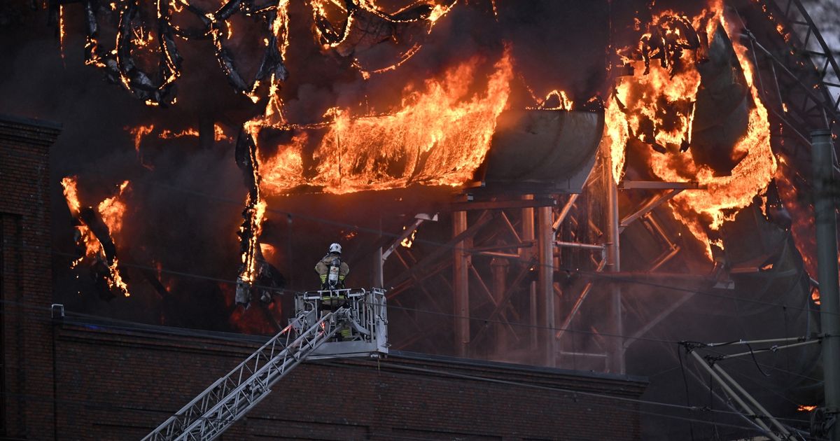 تُظهر اللقطات الدرامية الرحلة الجديدة في Oceana Waterworld في جوتنبرج بالسويد، وهي مشتعلة بالنيران مع تصاعد الدخان الأسود الكثيف في السماء، بينما تم إجلاء الناس