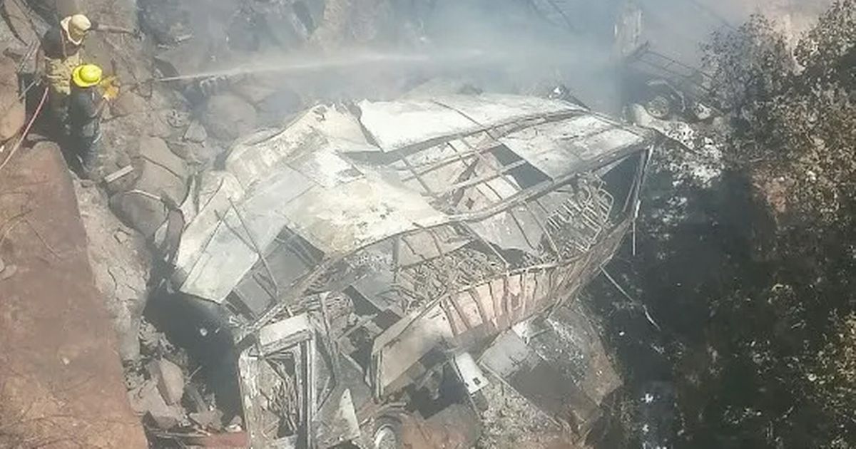 لقي 45 شخصًا حتفهم عندما سقطت حافلة من فوق أحد الجسور قبل أن تشتعل فيها النيران في حادث مروع.