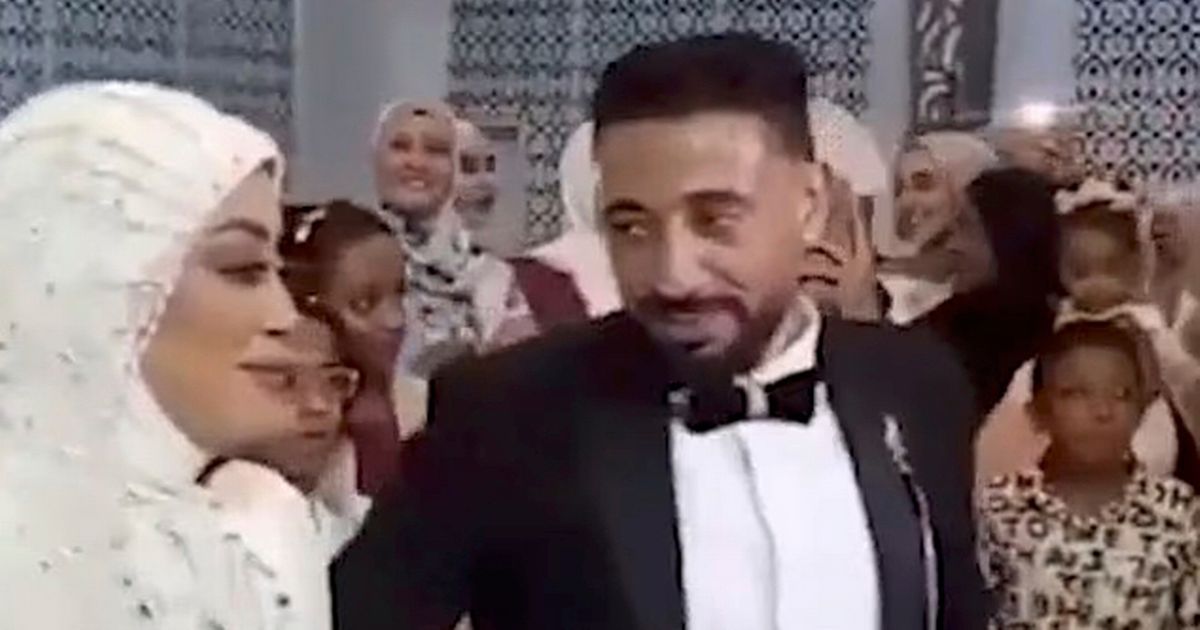 ترك الضيوف يراقبون على رعب عندما سقط أشرف أشرف أبو هاكام على الأرض بينما كان يمسك بيد عروسه بينما احتفل المتزوجون حديثًا بيومهم الكبير معًا