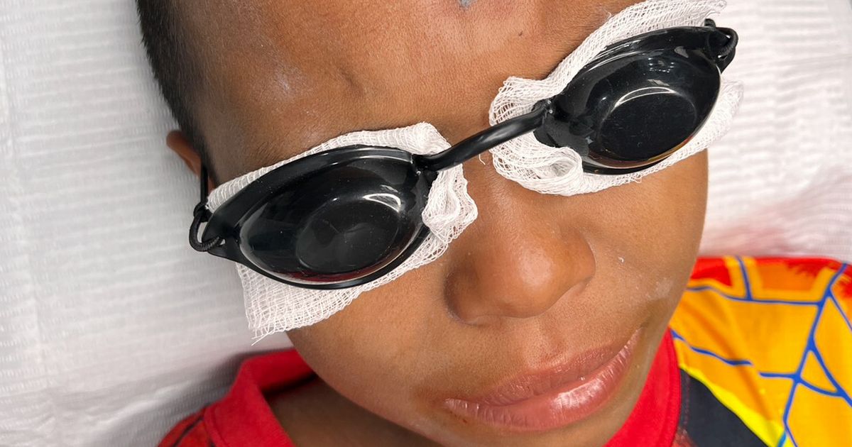 تلقى الطفل البالغ من العمر 10 سنوات الجولة الأولى من إزالة الوشم بالليزر، حيث أظهرت الصور أنه يرتدي نظارات واقية بينما تعمل السيدة كايوكيت على الوشم. وقال الفنان: “لقد صدمت من أن أحداً يجرؤ على وشم مثل هذا الطفل الصغير”. “لكنني أكدت له أنه يمكن إزالة الوشم بسهولة لأنهم كانوا يستخدمون أداة فقط، وهي إبرة خياطة متصلة بقلم”.