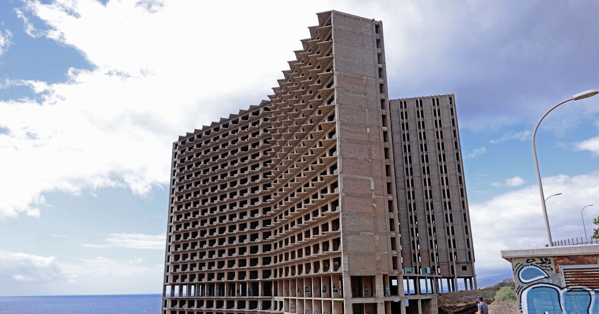 فندق Añaza، المعروف محليًا باسم “Añaza monstrosity”، في انتظار الهدم وله أعمدة رفع ونوافذ مفتوحة، وقد ظل فارغًا لأكثر من 50 عامًا.