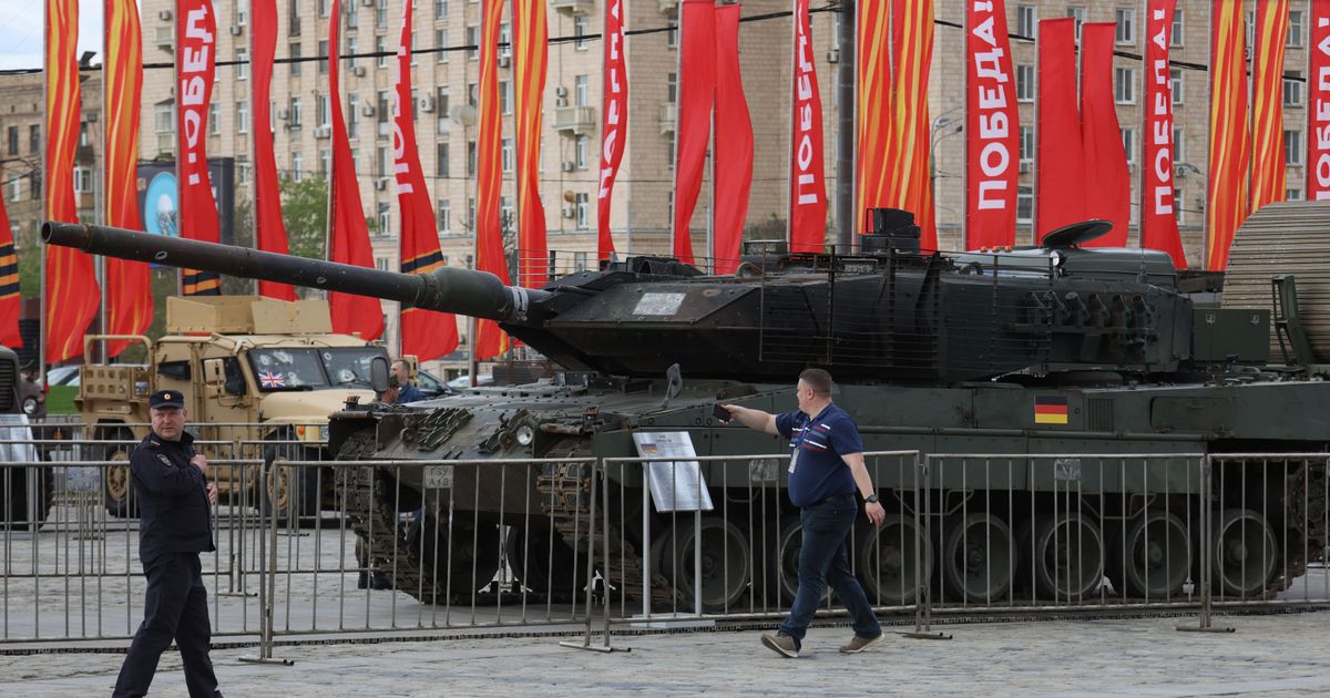 تم عرض خارجي لمدة شهر للدبابات والمعدات العسكرية الأخرى التي استولت عليها روسيا في أوكرانيا في حديقة النصر قبل احتفالات يوم النصر في البلاد.