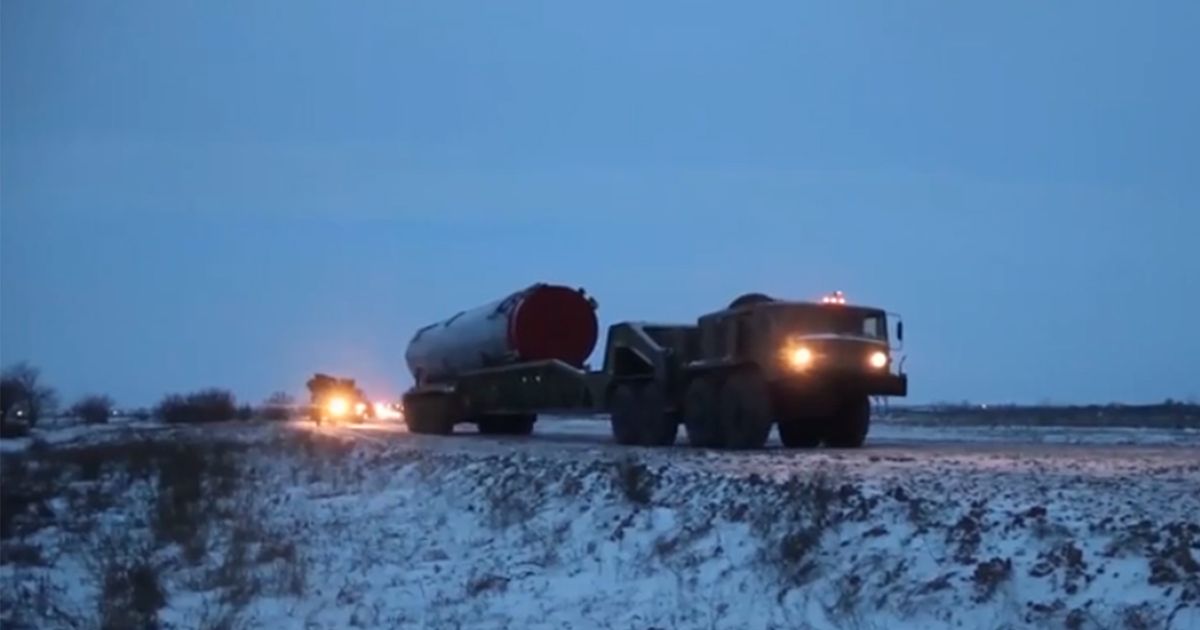 تُظهر اللقطات صاروخًا باليستيًا عابرًا للقارات تم تحميله في منصة إطلاق في فرقة الصواريخ الثالثة عشرة المجهزة بـ Avangard لقوات الصواريخ الاستراتيجية، تشكيل ياسني في منطقة أورينبورغ. جاء ذلك في الوقت الذي أعلن فيه كاراكاييف أن روسيا ستجري سبع عمليات إطلاق باليستية عابرة للقارات في عام 2024، كاختبارات طيران لأنظمة صاروخية جديدة أو تدريبات.