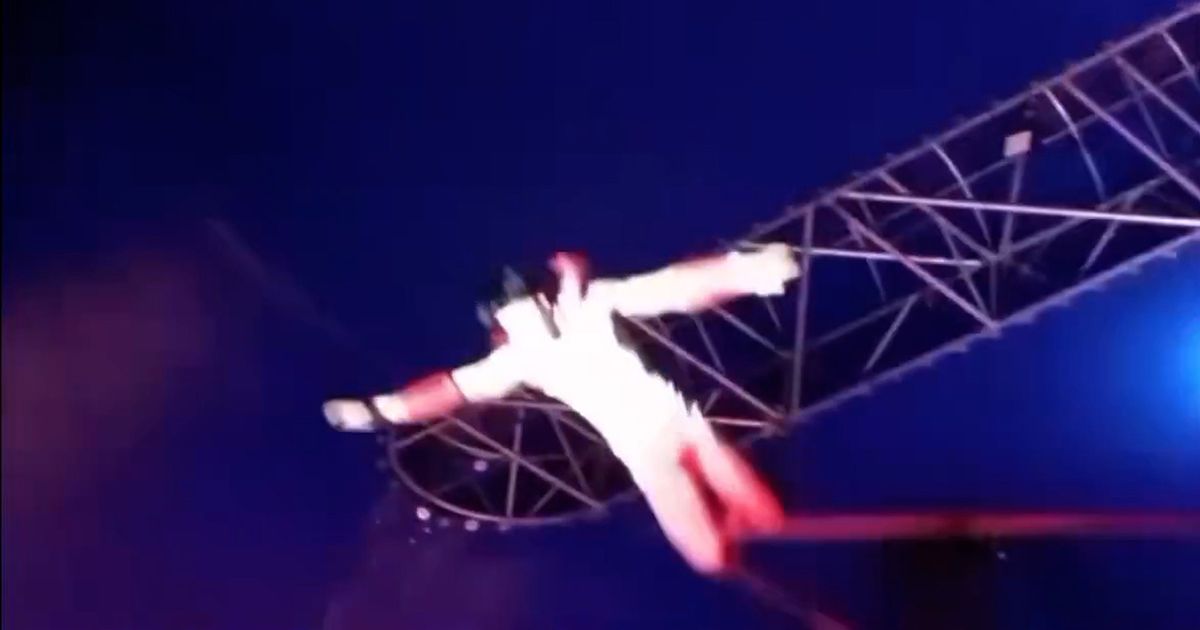 بينما يستعد الفنان للذروة لأدائه ، يفقد فجأة قبضته ويسقط على بعد 10 أمتار على الأرض ، تاركًا الحشد يلهث. لم يكن هناك شبكة أمان واضحة تحتها عندما سقط على الأرض.