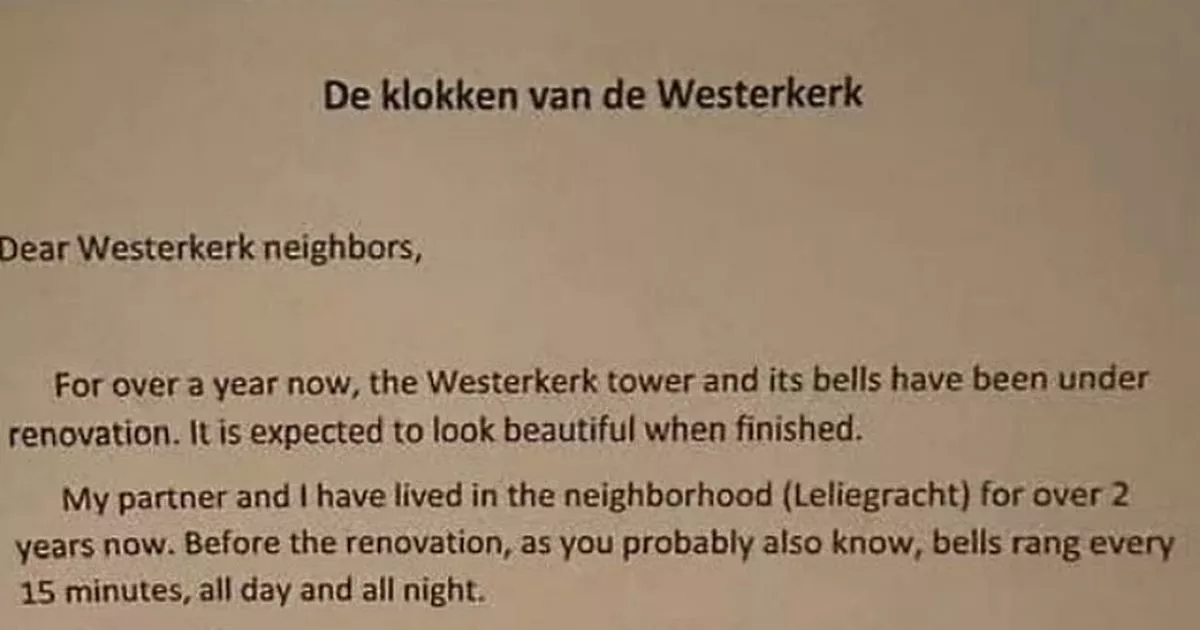 وكتبوا: “منذ أكثر من عام الآن، يخضع برج Westerkerk وأجراسه للتجديد. ومن المتوقع أن يبدو جميلًا عند الانتهاء منه. لقد عشت أنا وشريكي في حي (Leliegracht) منذ أكثر من عامين. قبل التجديد، كما تعلمون أيضًا، كانت الأجراس تدق كل 15 دقيقة، طوال النهار وطوال الليل.