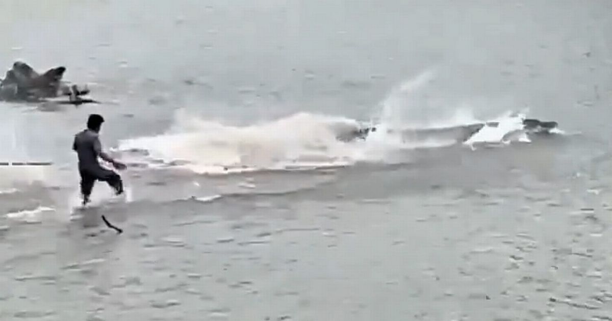 جمع اللاعب البالغ من العمر 40 عامًا السكان المحليين لإجراء بحث قبل اكتشاف Wasim الذي يتم جره بواسطة التمساح الذي كان لا يزال يتربص في مكان الحادث. عندما هرب التمساح مع الرجل في فكيه ، حاول القرويون المسلحون بالعصي مطاردة الحيوان من ضفاف نهر سيماكا.