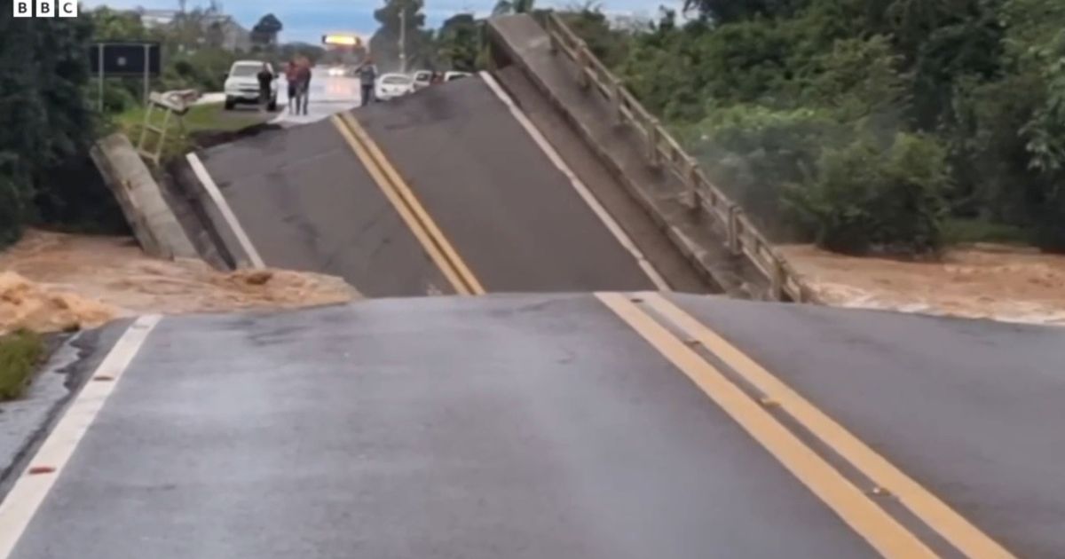 انهار جسر وسقط في النهر وسط فيضانات مدمرة في البرازيل أودت بحياة 39 شخصا.