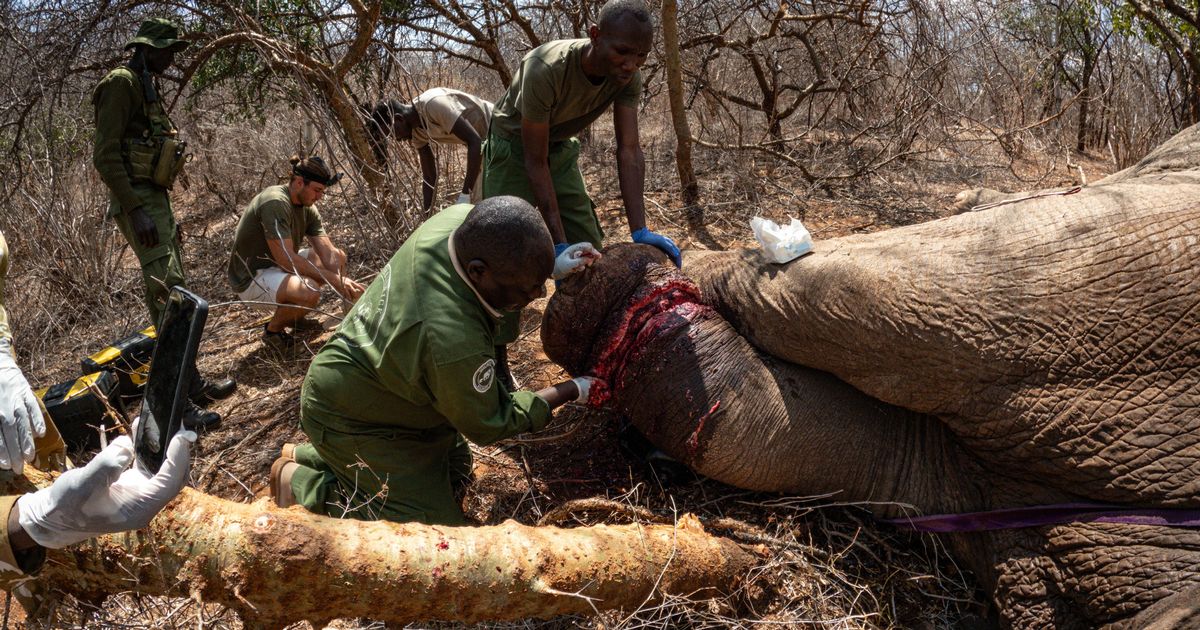 تم القبض على الفيل بواسطة كابل متصل بوردة عميقة في منطقة نائية من تسافو، كينيا. وأظهرت لقطات فيديو أن الحبل قطع في كاحل الفيل.