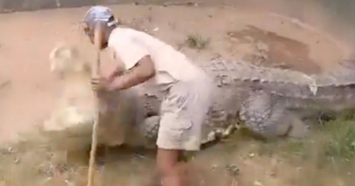 كاد مدرب تمساح من جنوب إفريقيا أن يفقد أعضائه التناسلية بعد أن عضه وحش ضخم يبلغ طوله 15 قدمًا بين ساقيه بعد أن طعنه بعصا في حظيرته أمام حشد من السياح.