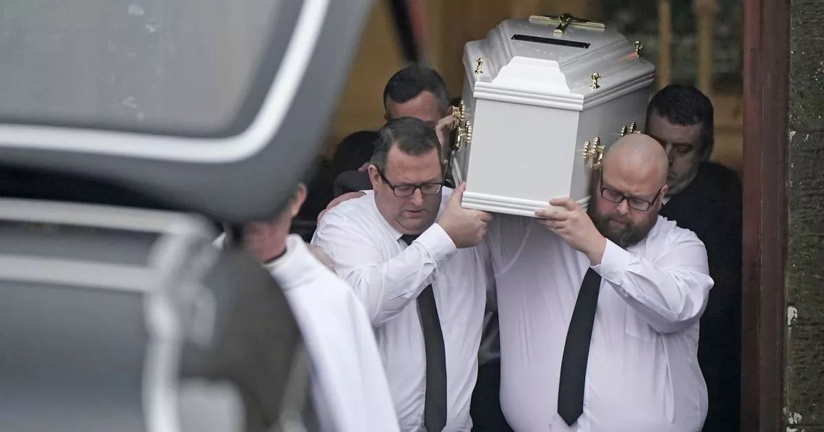 تم إحضار سيارات الليغو والهلام والفنون والحرف اليدوية وخوذة ركوب الدراجات الخاصة بماثيو إلى المذبح من قبل أعمامه وأبناء عمومته. وقال كاهن الرعية الأب كريستي فيتزجيرالد للمشيعين: “نحن في المكان الذي لا يريد أحد أن يكون فيه اليوم”.