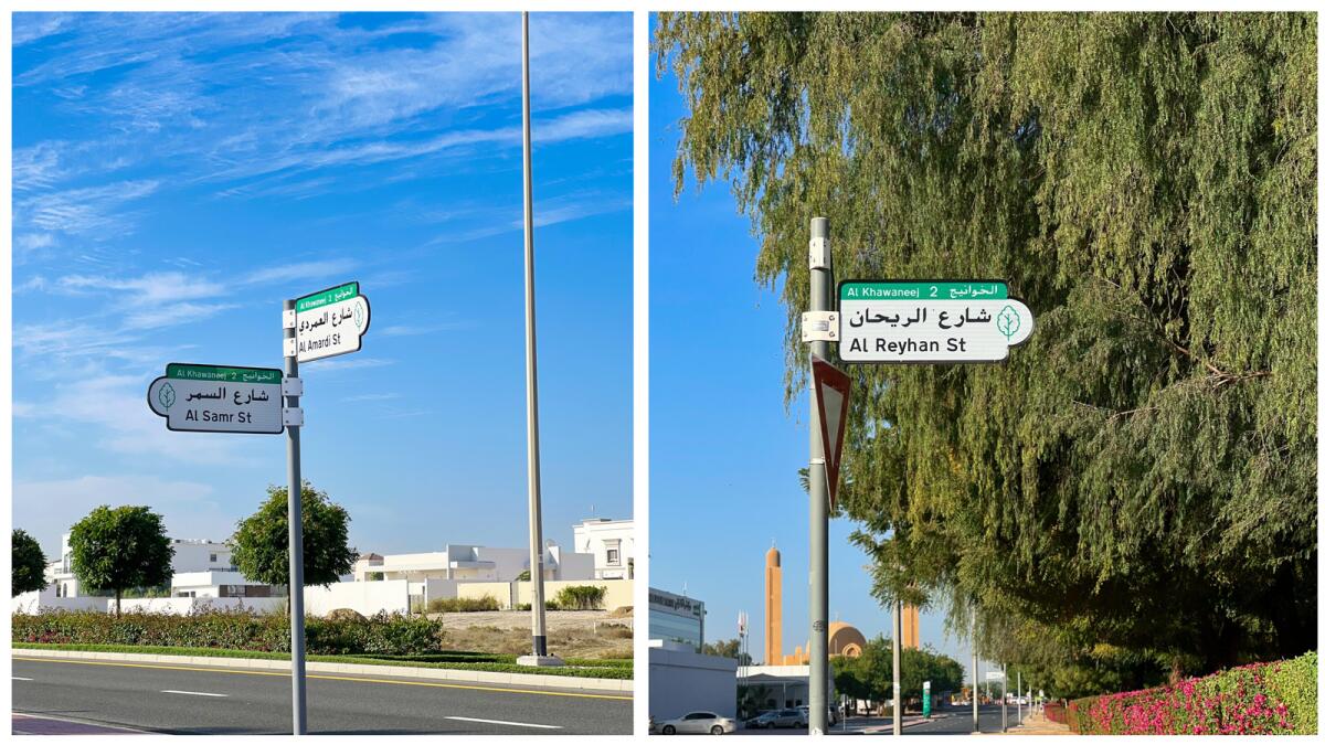 وشهدت المرحلة الأولى من المبادرة تسمية الطرق في منطقة الخوانيج 2. وقد استوحت أسماء الشوارع الجديدة من الأشجار والزهور المحلية، مثل شارع الغاف، الذي سمي على اسم أحد أشهر أنواع الأشجار الموجودة محلياً.