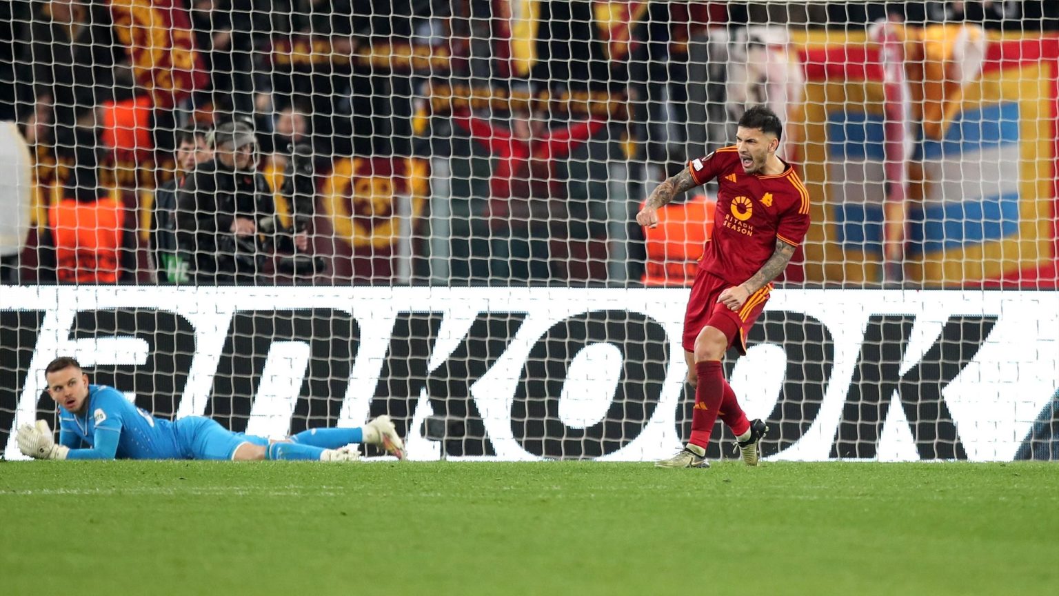 “تغلب روما على فينورد ليحجز مكانه في دور الـ16 من الدوري الأوروبي بعد فوزه بركلات الترجيح في العاصمة الإيطالية مساء الخميس. وضع جيمينيز فينورد في المقدمة في الدقائق الخمس الأولى قبل أن يسجل لاعب خط وسط روما بيليجريني أحد الأهداف. “هذا الموسم من أجل التعادل. وبعد 120 دقيقة متعبة، ذهب التعادل إلى ركلات الترجيح وخرج روما منتصرا.”