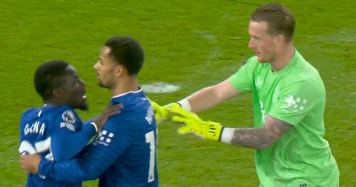 كان لا بد من تقييده من قبل أعضاء آخرين في فريق إيفرتون بما في ذلك جوردان بيكفورد بعد أن تلقى أوامره بالسير.
