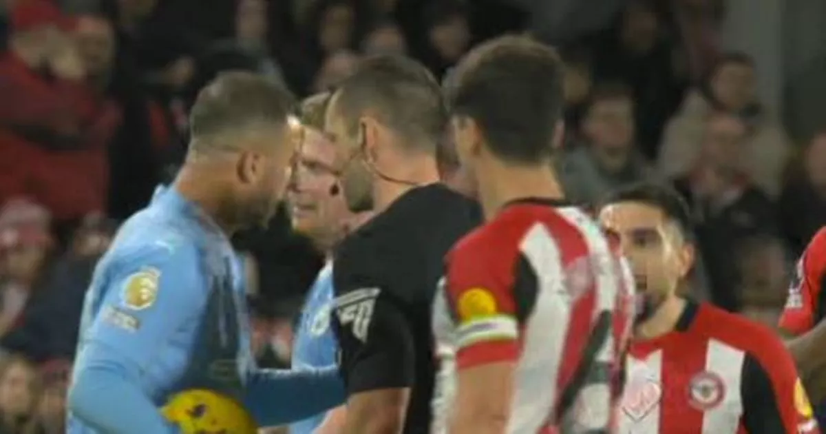 تدخل بيب جوارديولا، المدير الفني لمانشستر سيتي، للتحدث إلى كايل ووكر بعد أن ترك المدافع المخضرم غاضبًا مع مهاجم برينتفورد نيل موباي ليلة الاثنين.