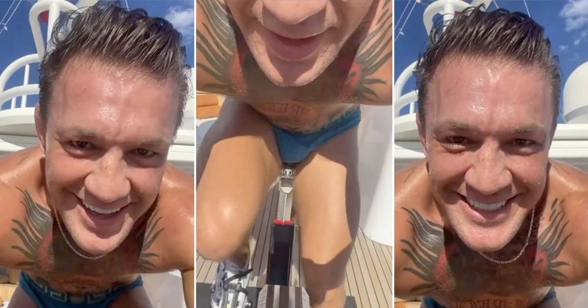 ترك أسطورة UFC كونور ماكجريجور المشجعين في حيرة من أمرهم بعد نشر مقطع فيديو على دراجة تمرين مع عرض “انتفاخه”.