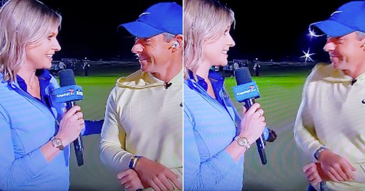 كان رد فعل روري ماكلروي عندما مدت المراسلة كاثرين تابن ذراعها أثناء إجراء مقابلة مع البطل الرئيسي أربع مرات في The Match IX أثناء بث TNT