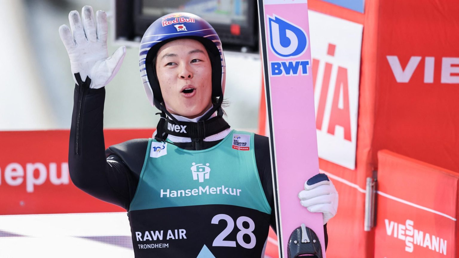 يحافظ ريويو كوباياشي على آماله في كأس العالم للقفز على الجليد بفوزه بفارق ضئيل على بيتر بريفك في تروندهايم