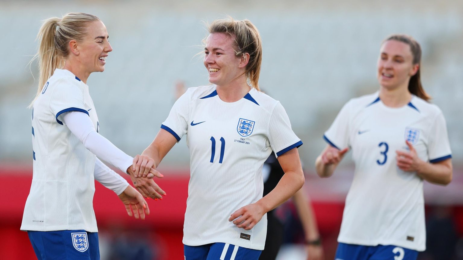 “سجلت لورين هيمب هدفين في الشوط الأول لتحقق إنجلترا ذات التهديف الحر فوزها الرابع على التوالي بفوزها الودي 5-1 على إيطاليا في إسبانيا. وقد سجل فريق سارينا فيجمان الآن 18 هدفًا في آخر ثلاث مباريات، مع وسجلت لوتي ووبين موي وإيلا تون وراشيل دالي أيضًا في مرمى الأزور، وهو الفوز الرابع على التوالي لإنجلترا بعد فوزها على هولندا واسكتلندا والنمسا.