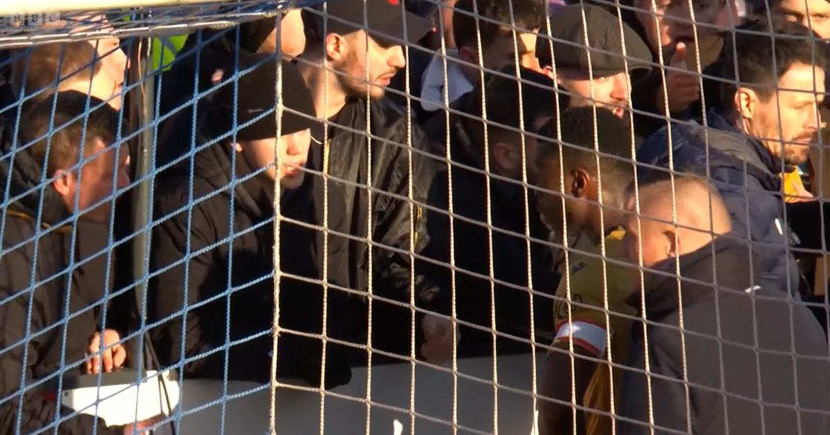 وبعد لحظات من صافرة النهاية، تحمل قائد فريق إيجلز مارك جويهي العبء الأكبر من إحباط الجماهير. اقترب المدافع من المشجعين الضيفين للاستماع إلى شكاواهم.
